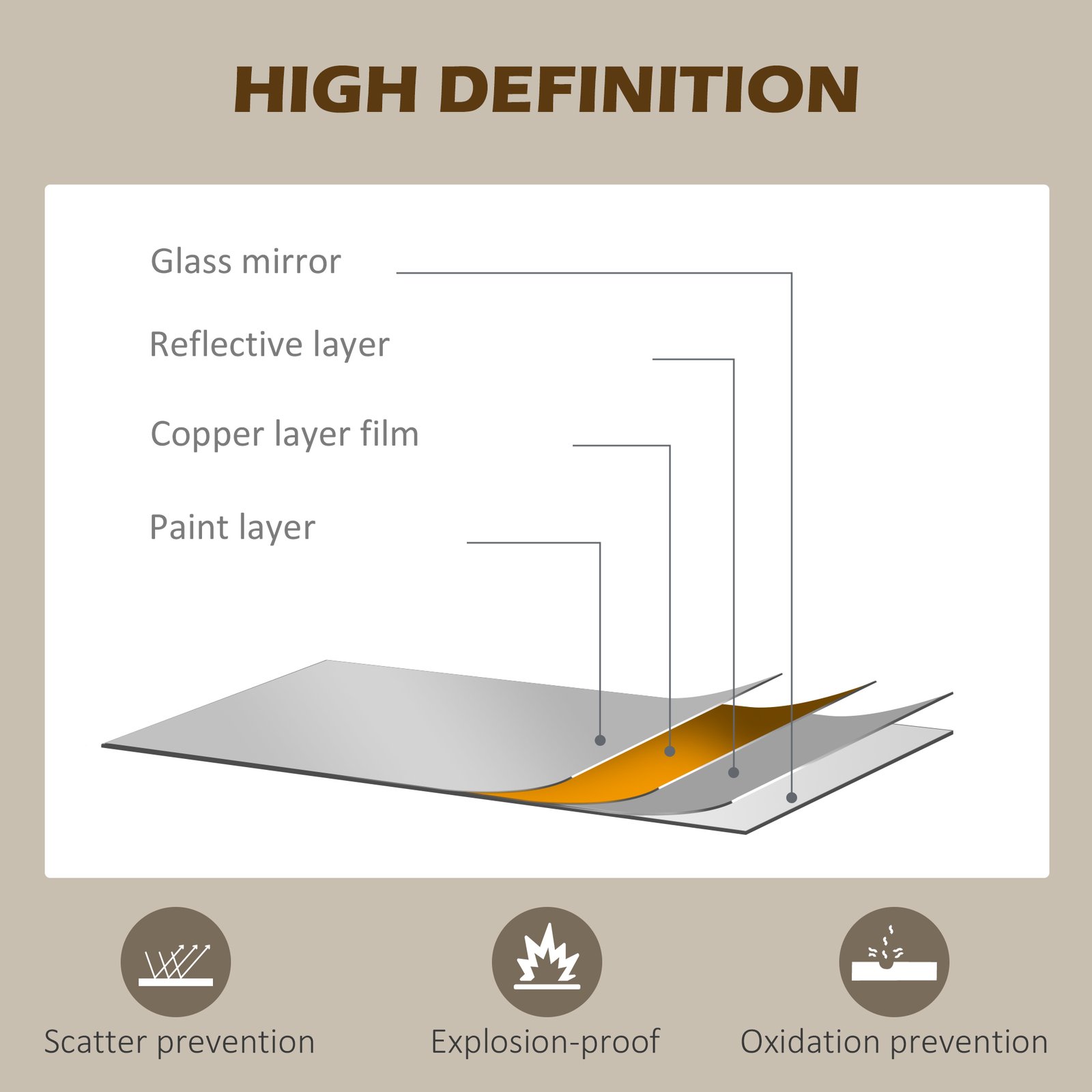 A classic, slightly retro addition for your home. This HOMCOM bedroom mirror comes in a curved shape, with a gridded inner – bringing character into your bedroom, hallway and beyond. A metal frame means a strong core, with built-in hooks to attach to a wall securely. The clear glass of this hallway mirror means a clear reflection – see yourself easily when getting ready.