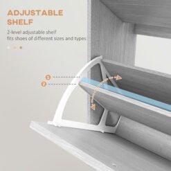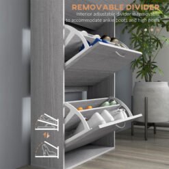 Made for the narrow spots, this HOMCOM slim shoe storage unit is here to keep the home clutter-free from shoes. Three flip drawers hold up to 12 shoe pairs – great for the household – or the individual shoe lover! Made from particle board, this shoe storage unit is solid and suitable for the everyday, with the paneled-door design giving it a modern look. Comes with anti-tipping straps to anchor to a wall safety.