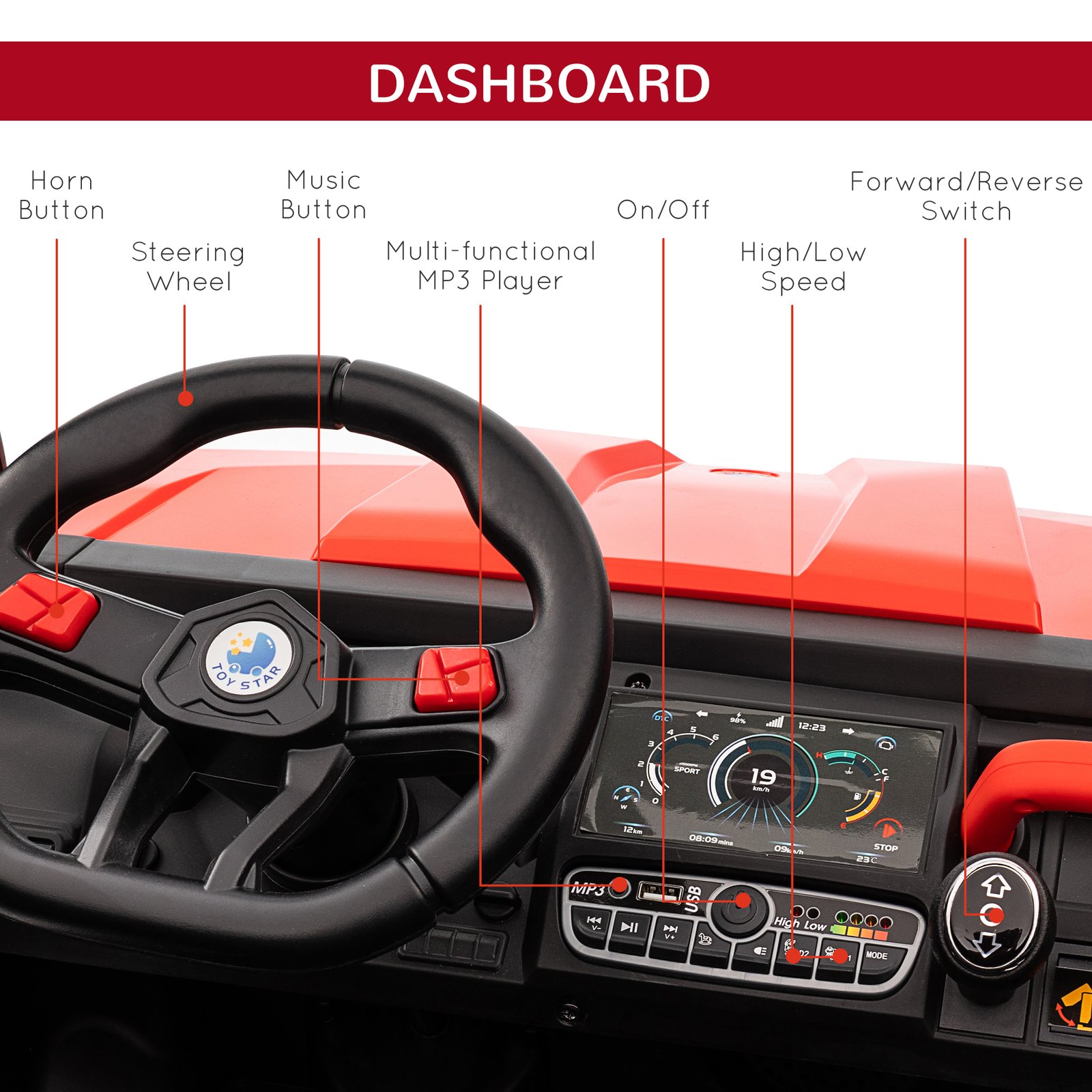 - Note: Children must be under adult supervision when riding. Two AAA batteries are required (not included)