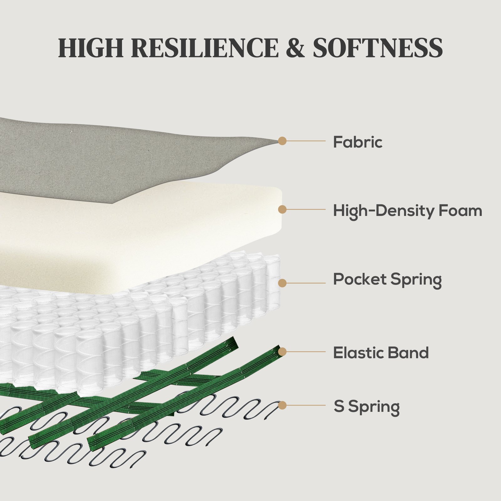 - Inner pocket springs, S spring and elastic bands to retain the shape