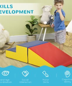 Transform any corner into an exciting play area with the HOMCOM kids playset. Featuring two soft blocks, you’ll arrange them in various ways for climbing, crawling and sliding. Great for energetic kids to burn off energy, it also supports their cognitive and physical development as they navigate the obstacles. Crafted from smooth, child-friendly materials, it’s safe and easy to clean, ensuring a hygienic play space. Watch your little explorers embark on adventures right in your living room!
