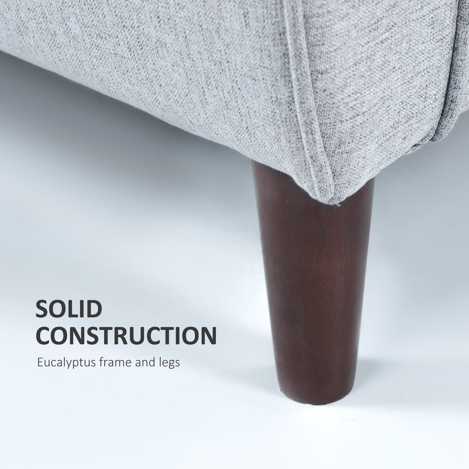 Living room comfort has never been so inviting. Bring this 2 seater sofa into your home and make it your number one spot for film nights, book times and relaxing with your family. The 140 cm wide design means there’s plenty of room for you and someone else – or extra space for just you. The small couch comes with thick padded cushions on the back and seat, with linen upholstery which is smooth against the skin. The solid eucalyptus frame is strong and durable for lasting use in your space.