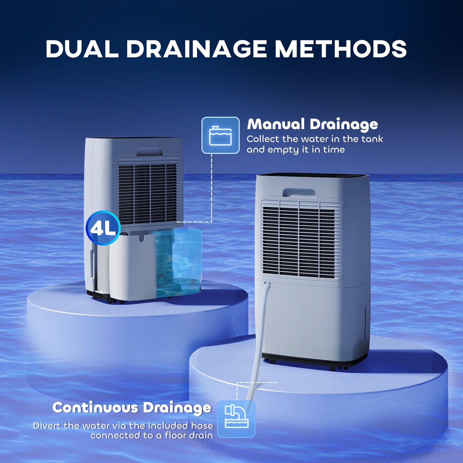 • Compact Size, 4L Tank: Small to fit in lots of places. Suitable for 16-20m sized areas. Removes up to 20L per day in a 30 room with 80% relative humidity.
