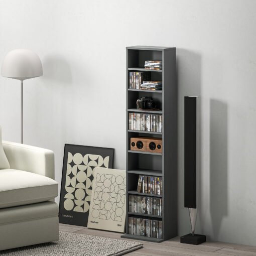 • Six adjustable shelves, holds 260 CDs/120 DVDs: CD storage tower holds plenty of your media. Shelves are easy to take out or remove, to cater for smaller or larger items