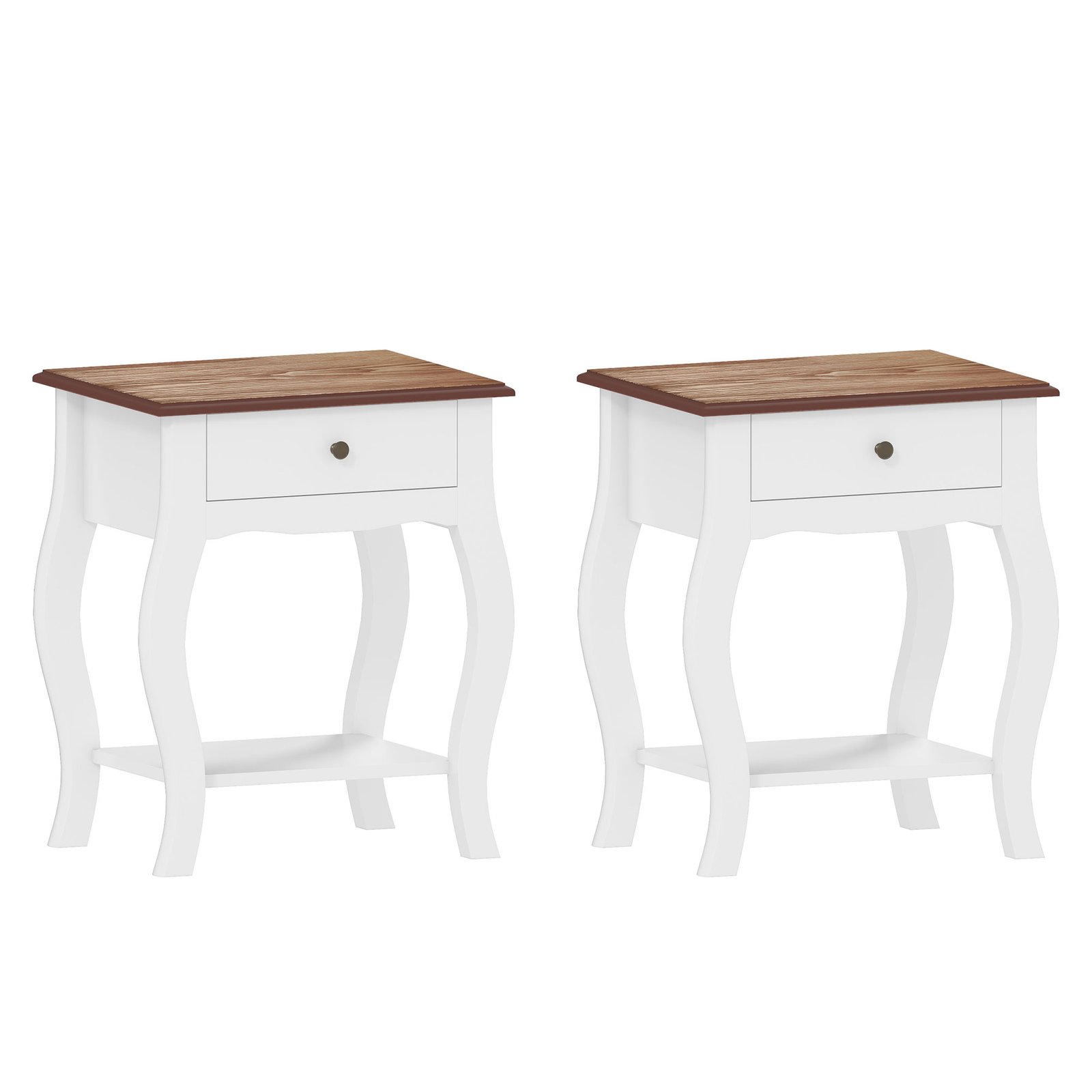 Create your relaxation zone with these two bedside tables from HOMCOM – where french style meets everyday convenience. Featuring a crisp solid colour finish and an oak wood effect top, the nightstand adds a touch of luxury to your bedroom. Sip a warm glass of milk placed on the top, tuck your phone away in the drawer and keep your favourite book close in the open shelf – everything you need for a relaxing bedtime routine and a smooth journey into dreamland. A great bedtime companion.