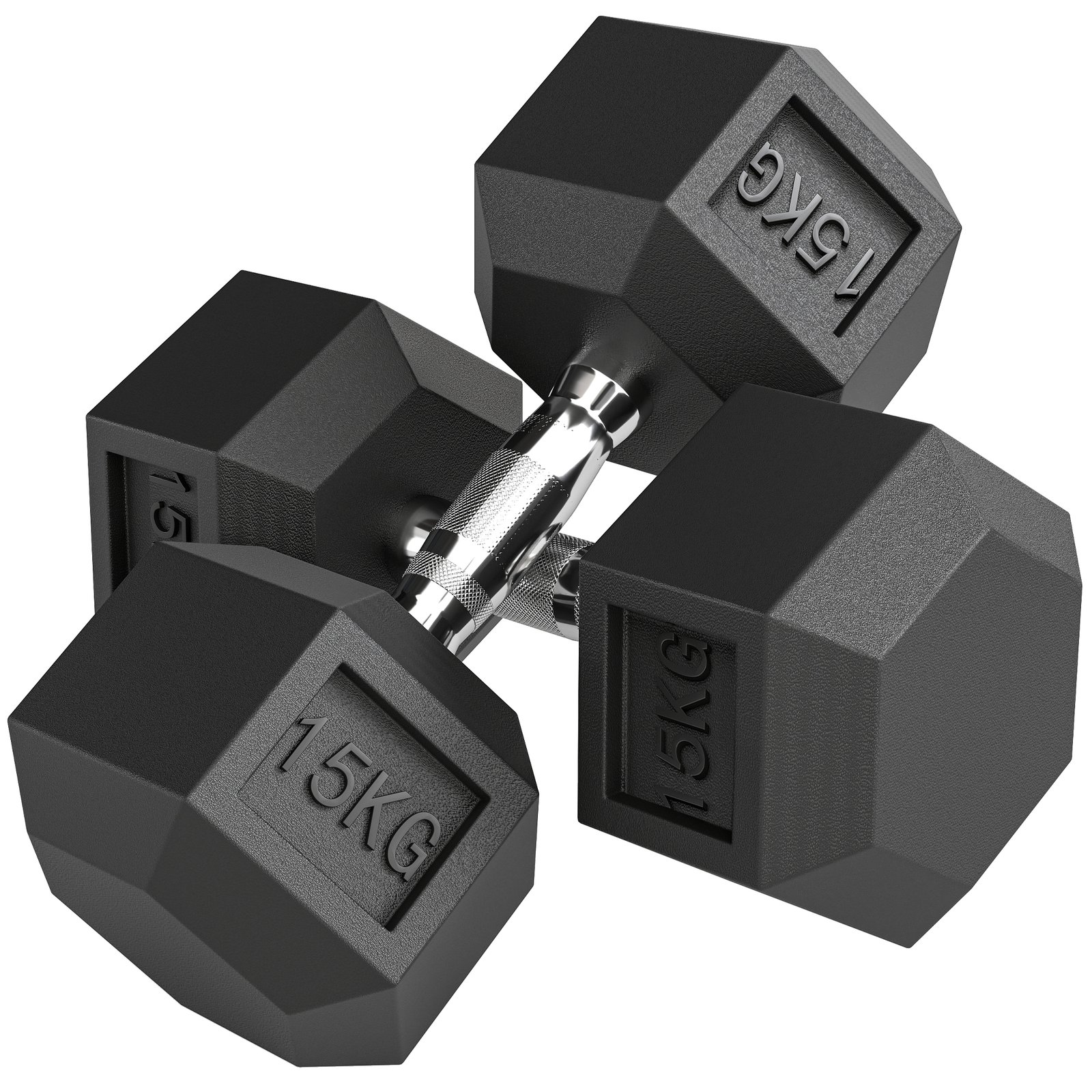 - 2 x 15kg Rubber Dumbbell;