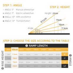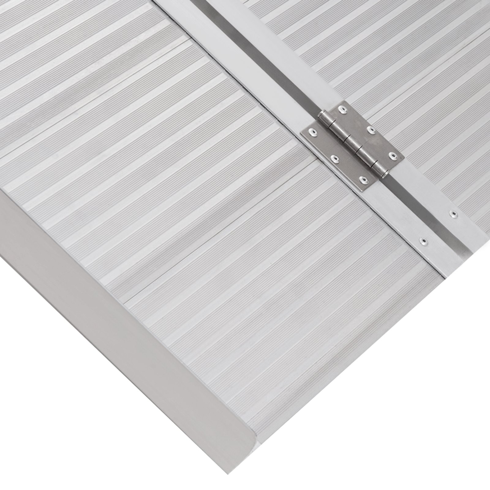 Get easier access to raised surfaces with this wheelchair ramp from HOMCOM. Covered with skidproof surface to prevent slipping, making it ideal for any weather condition. When not in use, the mobility scooter ramps can be easily folded, saving space and enabling storage in the vehicle or at home. The durable aluminium frame is anti-corrosive to last for years of usage. This door ramp can be used with wheelchairs, lawn mowers, scooters or any other heavy item that may have trouble with stairs.