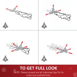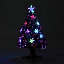 • Multicoloured fibre optics and LED snowflakes on the branches and a large multicoloured star at the top.