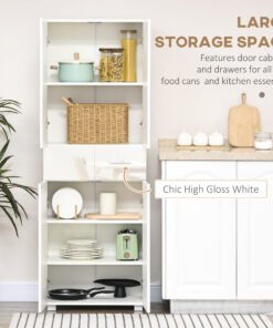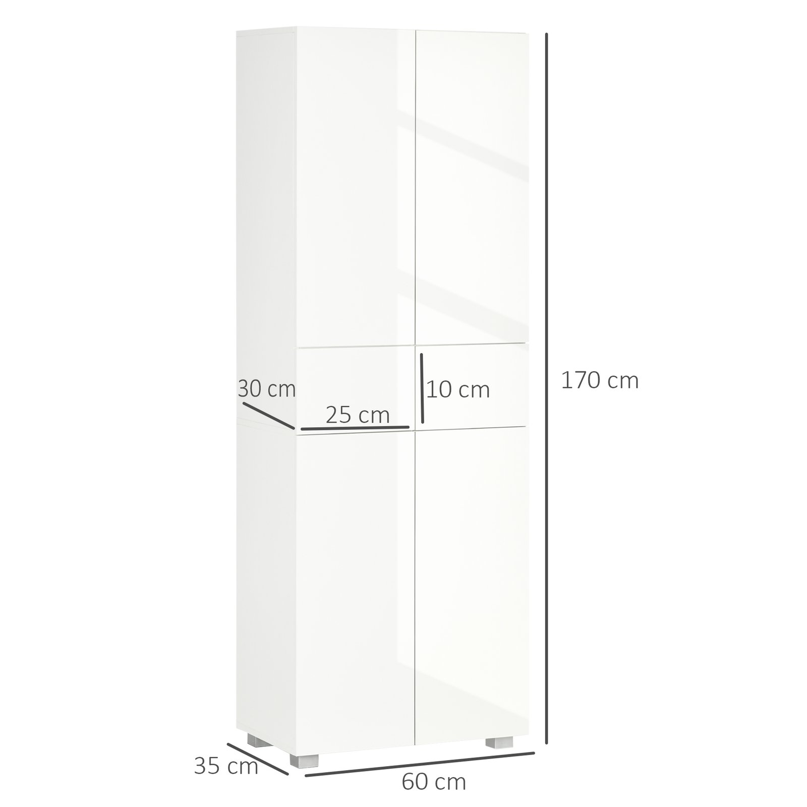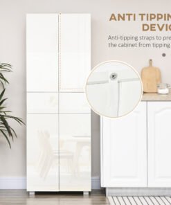 Expand kitchen space the modern way, with this HOMCOM storage cupboard. The high gloss design, paired with the clean-cut shape, makes it a fresh addition which looks great in plenty of places. It comes with a top and bottom cupboard and middle drawer – plenty of storage. The push-open door design makes it easy to access – no pulling on handles. Inner adjustable shelves – set to the level you want. A true all-rounder.