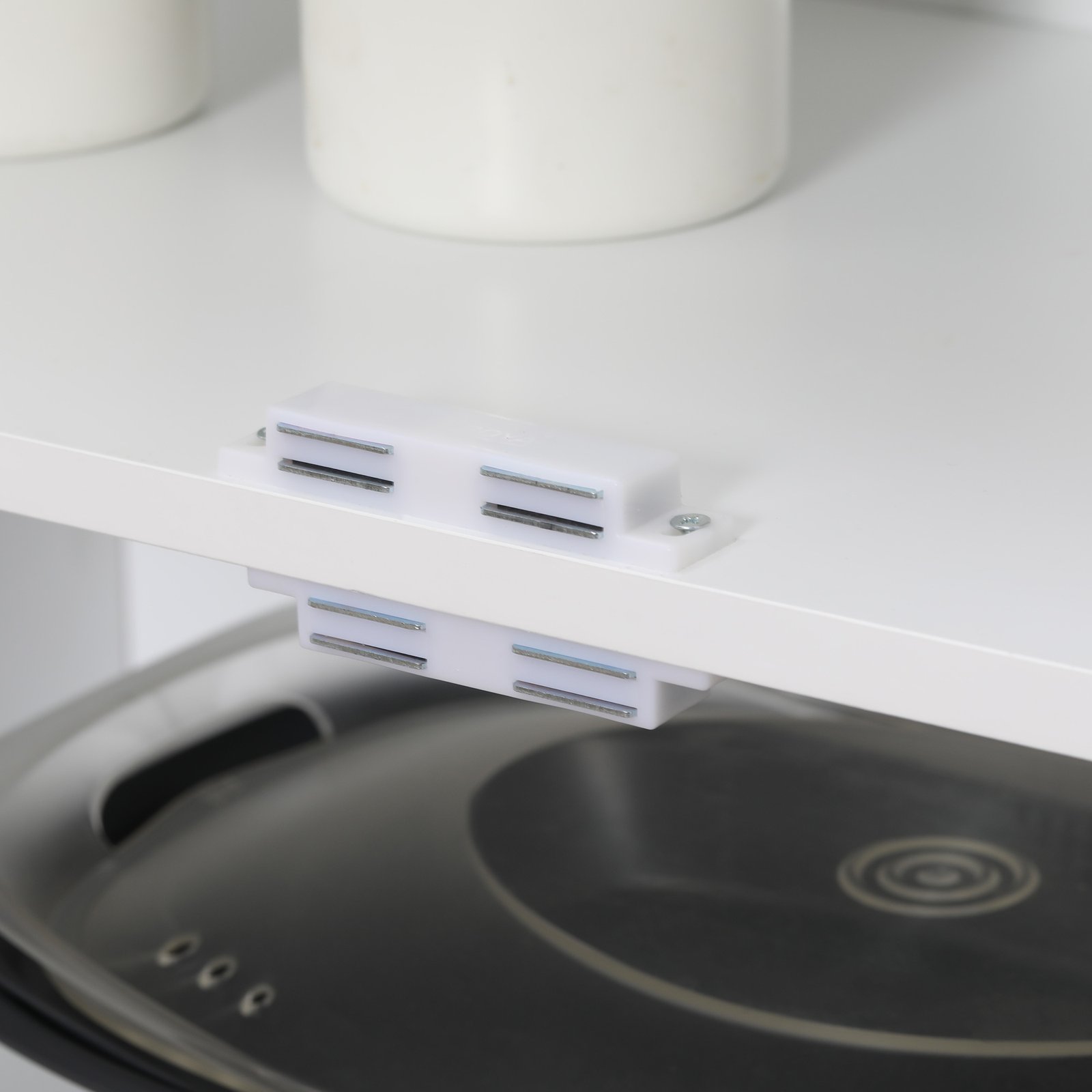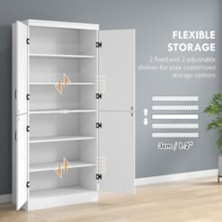 Need some more storage options in the kitchen? This HOMCOM kitchen larder cupboard is here to help. Neutral white colour, paired with the clean-cut shape makes it a modern touch for your home kitchen and dining spots. Six tiers provide plenty of storage room, this kitchen cabinet is safely guarded by the four front doors with sleek metal handles. Home tidiness, made effortless.