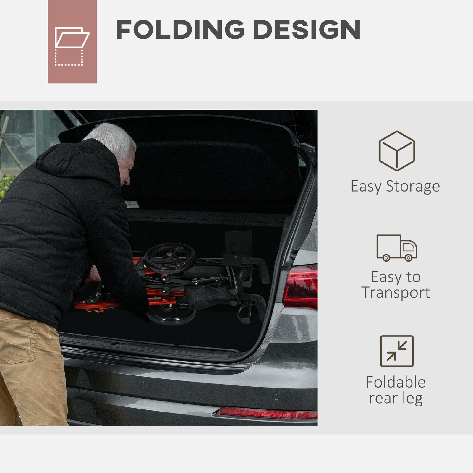 - The rear legs of the rollator walker are foldable
