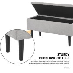 Storage, with a seat to rest on occasionally – this HOMCOM ottoman is a handy double-duty piece for the bedroom, hallway, office and more. Open the lid to reveal a 90 x 32cm space, great for small furnishings. Four wooden legs for support when loaded and when you’re seated. A simple and stylish design, this end of bed storage bench works well with your current furniture.