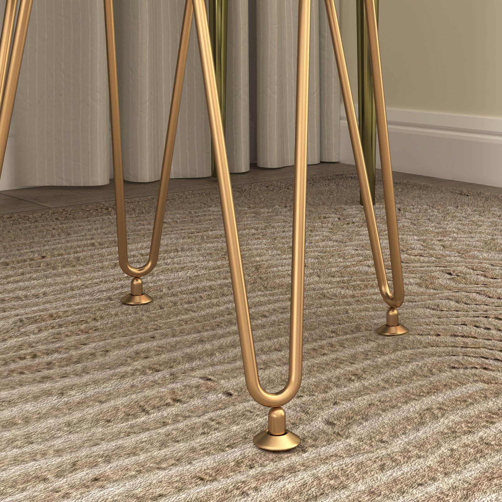 - Contemporary look with luxurious velvet and hairpin legs