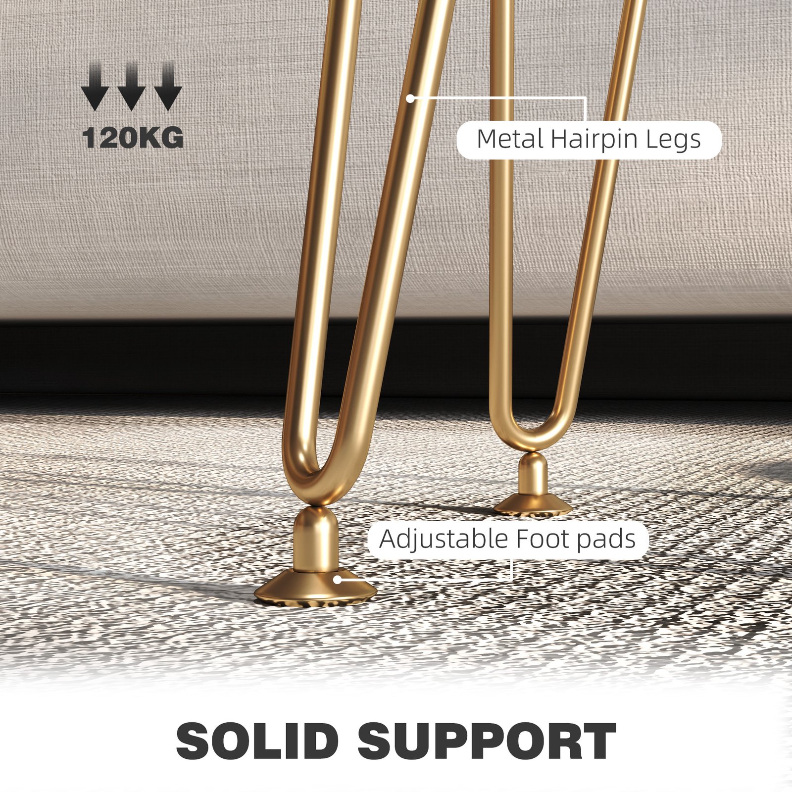 - Robust metal legs with adjustable foot pads ensure stability