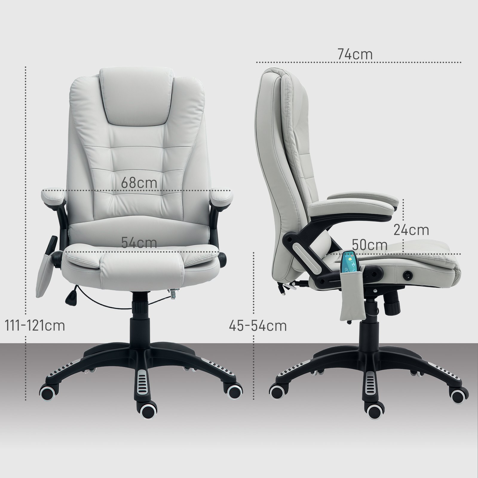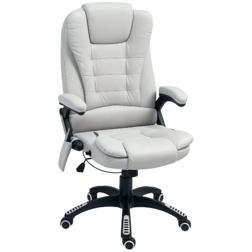 The massage office chair from HOMCOM combines traditional style and comfortable features. The heat and massage functions operate independently, giving you the freedom to customise your experience, with the faux leather design making it a classic executive design. Thick padding for comfort, tall back and armrests for support. Completed with five wheels on the base.