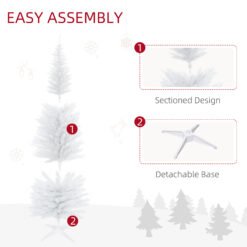 HOMCOM 6ft Unlit Artificial Christmas Tree, Pencil Slim Xmas Tree with Solid Stand and Realistic Branches, White