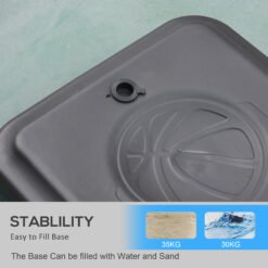 - Weighted base, which you can will with 35kg of sand or 30kg of water for stability