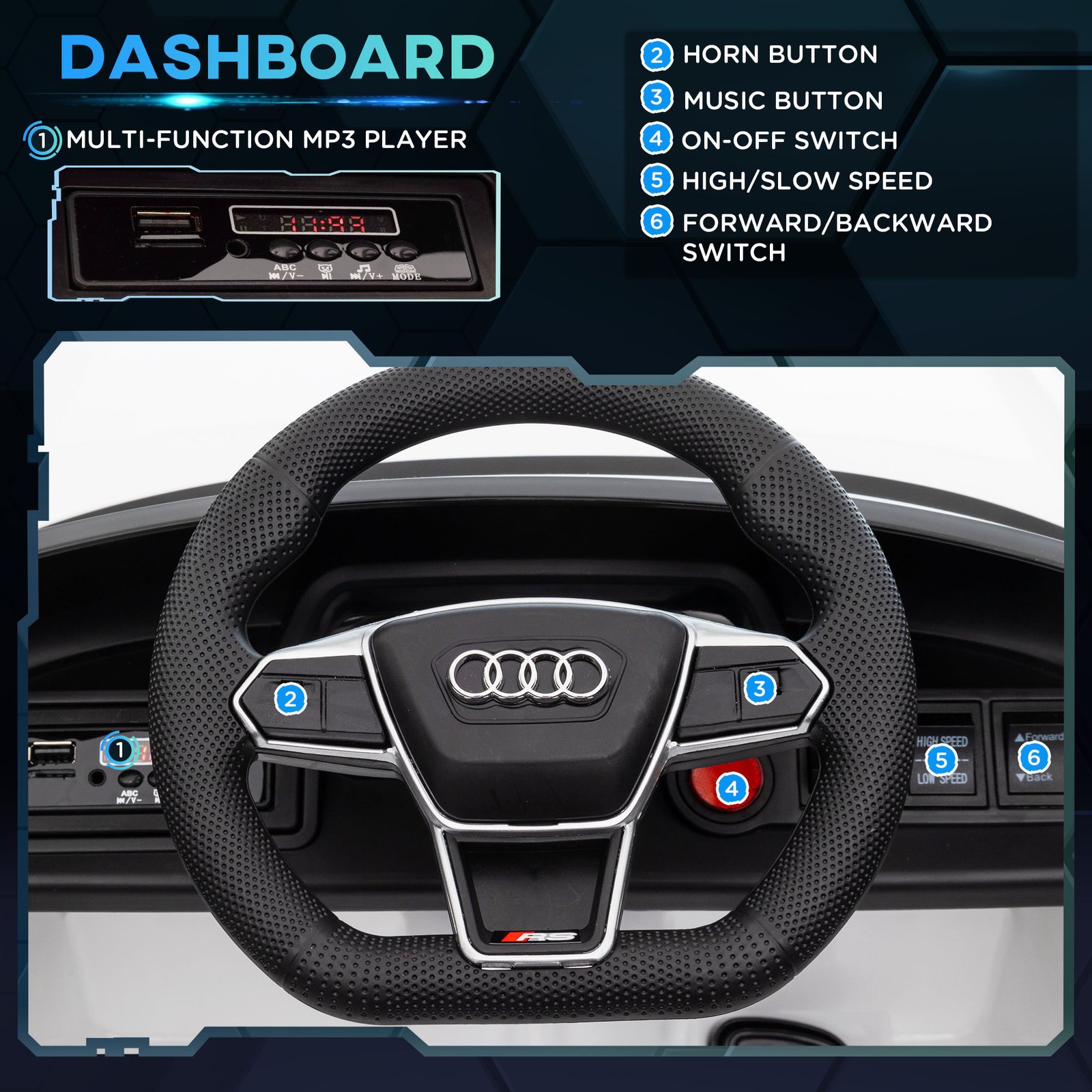 Thanks to this Audi licenced HOMCOM 12v kids’ electric ride-on, kids will cruise in style with two-speed options. The LED lights, steering wheel and horn provide a realistic cruising experience, whilst their favourite songs will play through the USB or TF card slot. Parents can join the fun, using the remote control to navigate the ride-on, which has three-speed options. The seatbelt keeps children properly secure, whilst the wide wheels and shock absorption keep the ride safe and smooth.