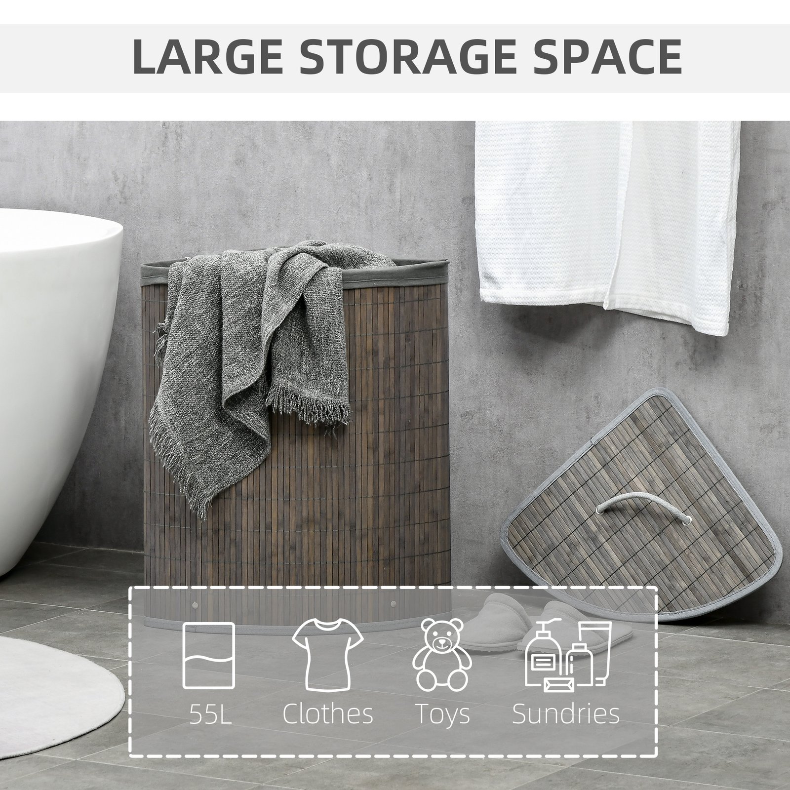 Dirty clothing need never be in the way again. This HOMCOM laundry hamper is an easy way to store your dirty clothes, keeping odours at bay with its bamboo structure and lid. A single compartment design, formed into a triangular shape, makes it great for individual use and fitting into smaller corners. The bamboo is naturally breathable and avoids collecting damp. Complete with an easy-lift lid with handle.