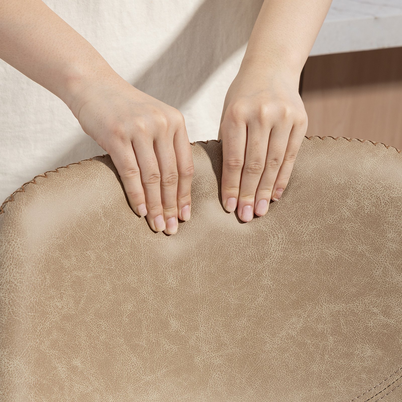 - Faux leather upholstery offers a sleek finish and smooth-to-the-touch feel