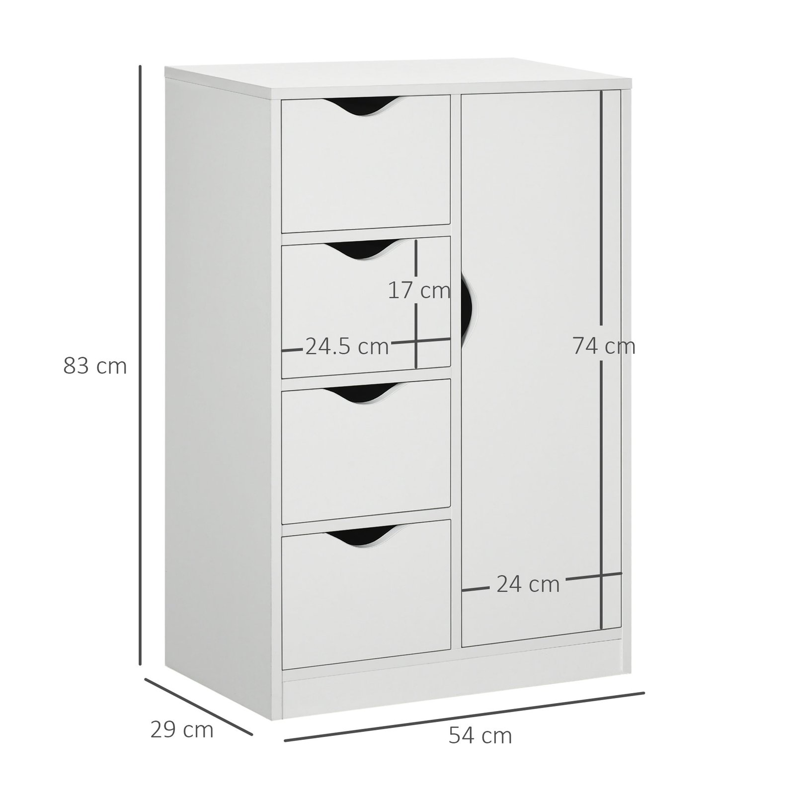 - Overall Dimensions: 54W x 29D x 83Hcm