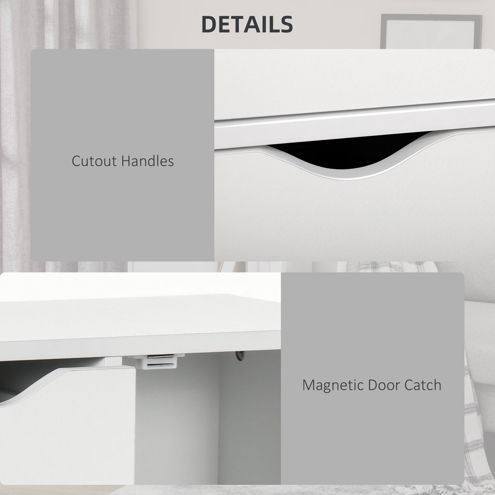 - Four drawers and a two-tier cabinet: generous amount of storage!