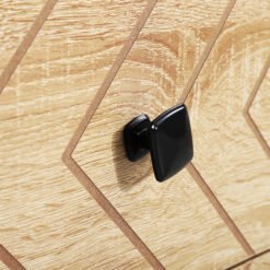 - Black handles on drawers for easy opening and closing