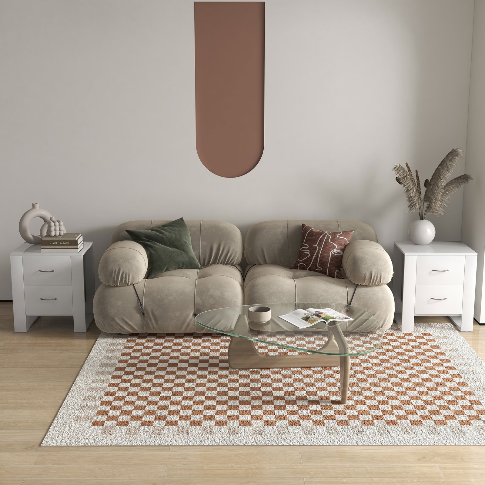 With its modern boxy shape, this end table is sure to bring in a luxe feel into your nightly routine. Its formed of two drawers, giving you room for keeping what you need stored within easy reach. Using particle board for the structure, it is solid and tough to withstand everyday use, and is coated with melamine for light protection against marks and stains. The side legs, which take up a large proportion of the size, provide complete balance and stability to the storage organiser.