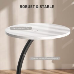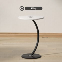 Discover the sleek HOMCOM Small Bedside Table, where the charm of a white marble effect tabletop meets a modern C-shaped silhouette. This round side table slides effortlessly under your sofa, optimising space in your living room or bedroom. Enjoy the fusion of functionality and elegance, great for your drinks, books, or decorative pieces. Enjoy style and functionality, effortlessly.