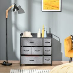 HOMCOM Chest of Drawers with 7 Foldable Drawers, 3-Tier Fabric Bedroom Dresser, Clothes Storage Unit for Bedroom, Living Room, Grey