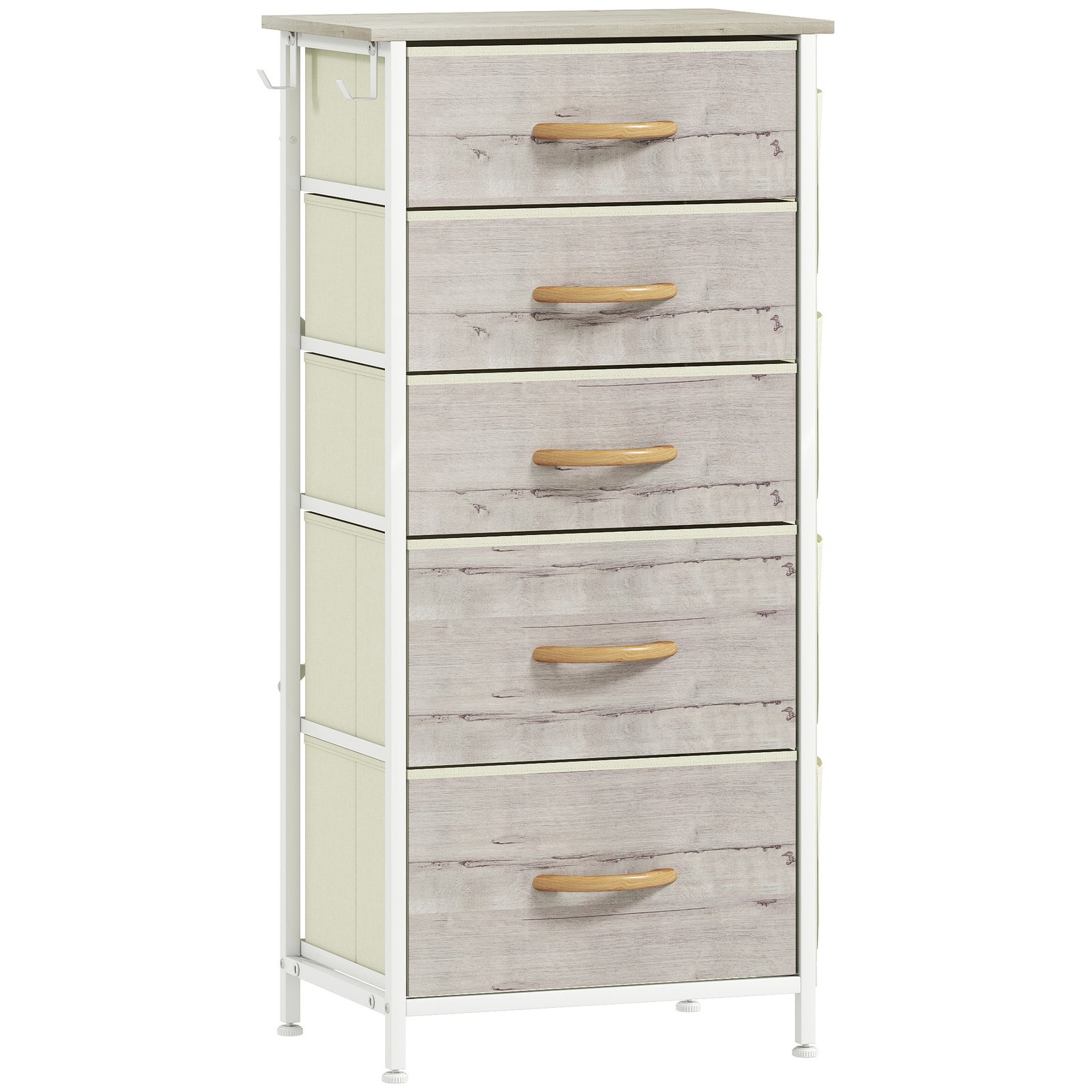 HOMCOM Chest of Five Fabric Drawers – Natural Wood Finish