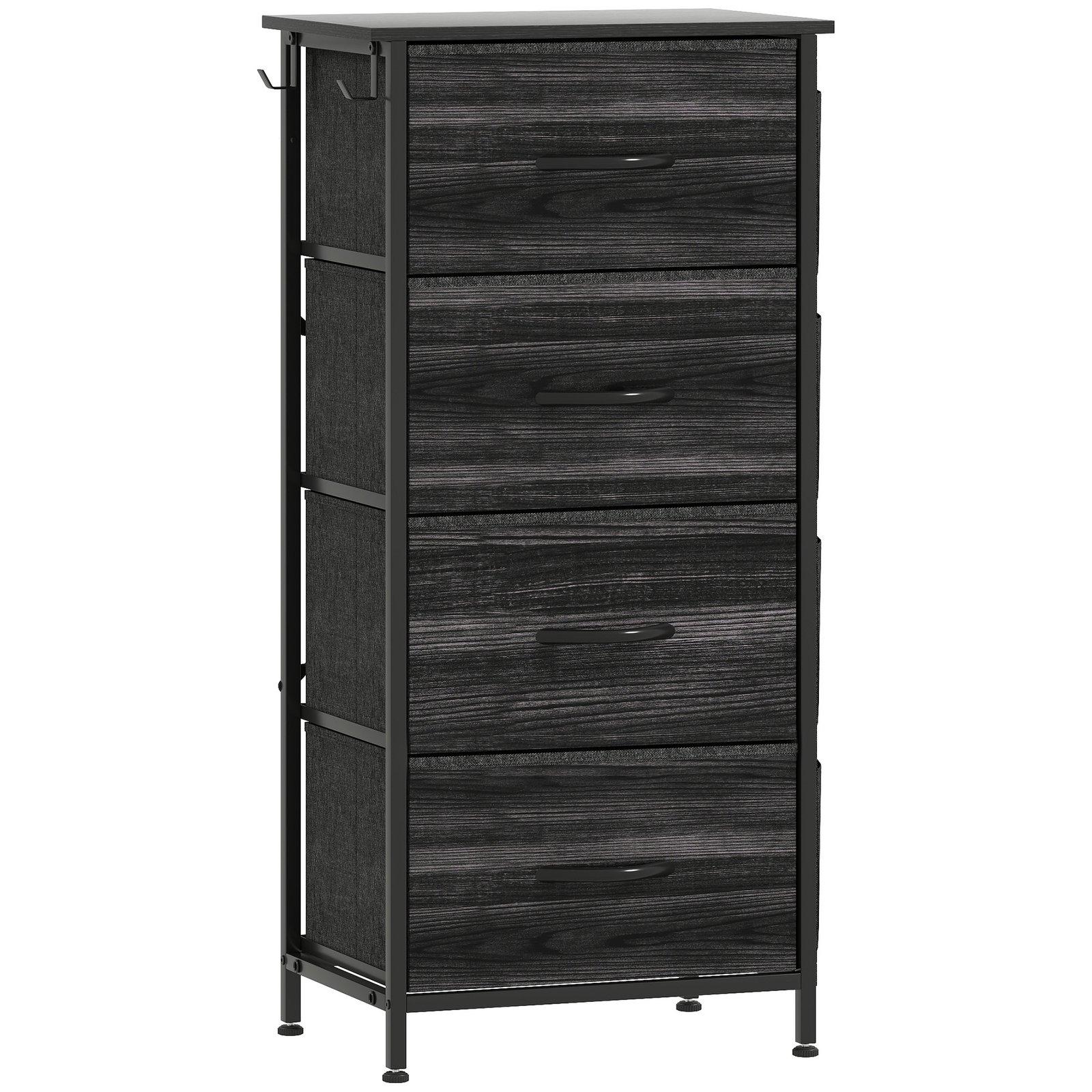 Easy, simple storage with this HOMCOM fabric chest of drawers. With four same drawers, it’s easy to sort everything from socks to pants. It also features four side pockets and two hooks to get smaller accessories altogether. A steel frame with X-bars keeps this bedroom dresser stable, finished with adjustable feet for balance – even on unsteady grounds.