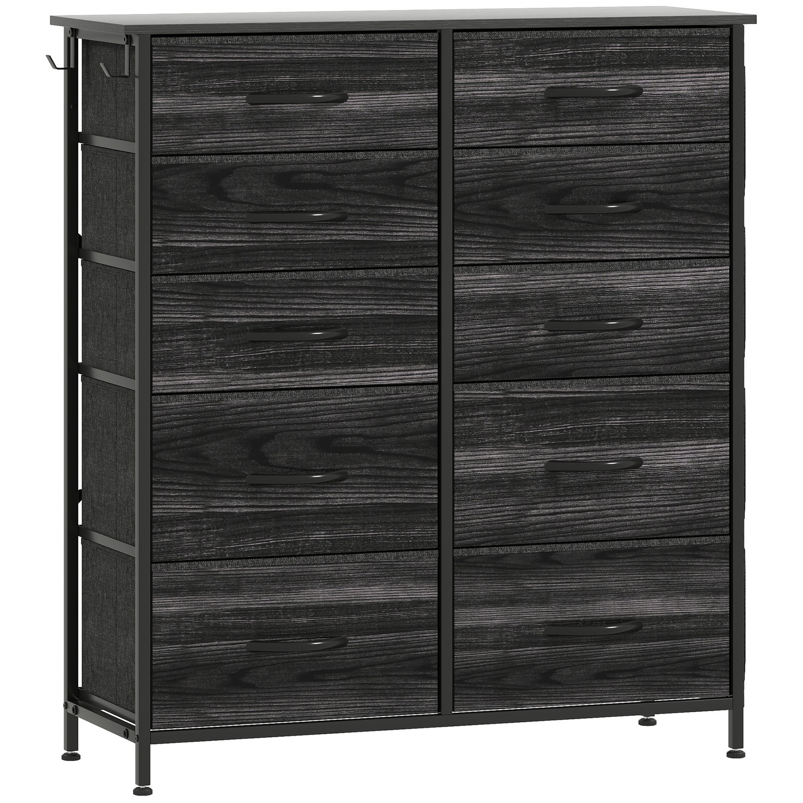 Easy, simple storage with this HOMCOM fabric chest of drawers. With six small and four large drawers, it’s easy to sort everything from socks to pants. It also features four side pockets and two hooks to get smaller accessories altogether. A steel frame with X-bars keeps this bedroom dresser stable, finished with adjustable feet for balance – even on unsteady grounds.