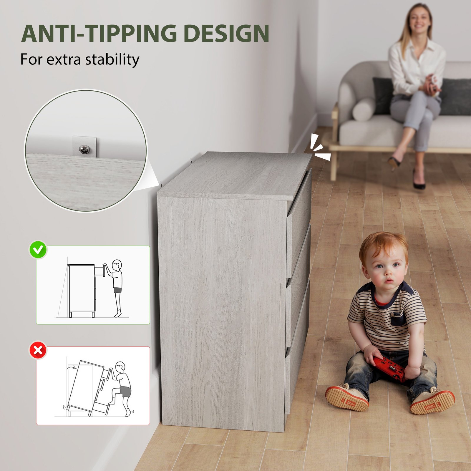 Add some style and organisation into the bedroom – do it with this HOMCOM dresser. Features three drawers for plenty of storage – keep tees, tops, trousers, underwear and more stored together. Made from particle board, it’s stable enough for everyday use, with a flat top to offer display room. Comes with anti-tipping straps for safety.