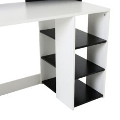 This HOMCOM study desk with storage combines contemporary design with highly efficient storage capabilities. A vertical platform with multiple shelves sits opposite 2 easy glide drawers with metal sliding rails and aluminium alloy handles. With a printer shelf and several bookshelves, in addition to a large surface space to ensure that you’ll never run out of room for all your desktop essentials. Increase your productivity and peace of mind with the latest office furniture offering from HOMCOM.