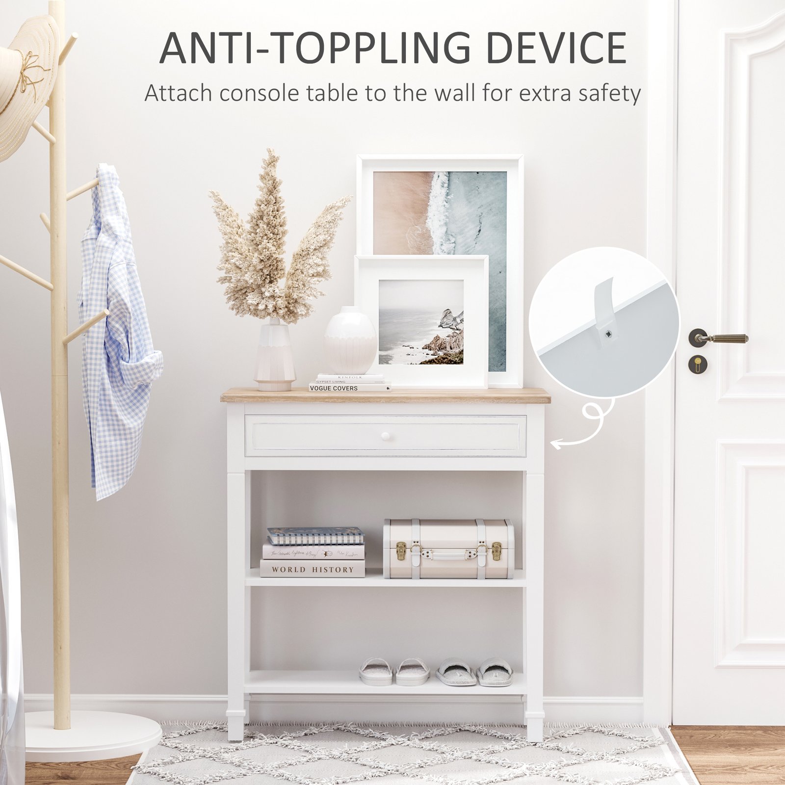 HOMCOM Console Table Hallway Side Desk 1 Drawer 2 Shelves Worktop Handle Retro Elegant Style Home Display Storage for Bedroom Livingroom