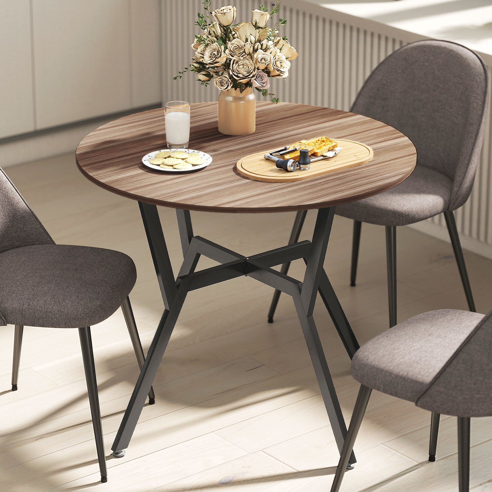 • Modern look, with a classic edge: Sharp black frame for a modern standout look. Wood-effect table top on this round dining table adds the classic touch.