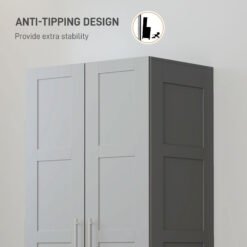 HOMCOM Double Paneled Door Wardrobe, with Shelves – Grey