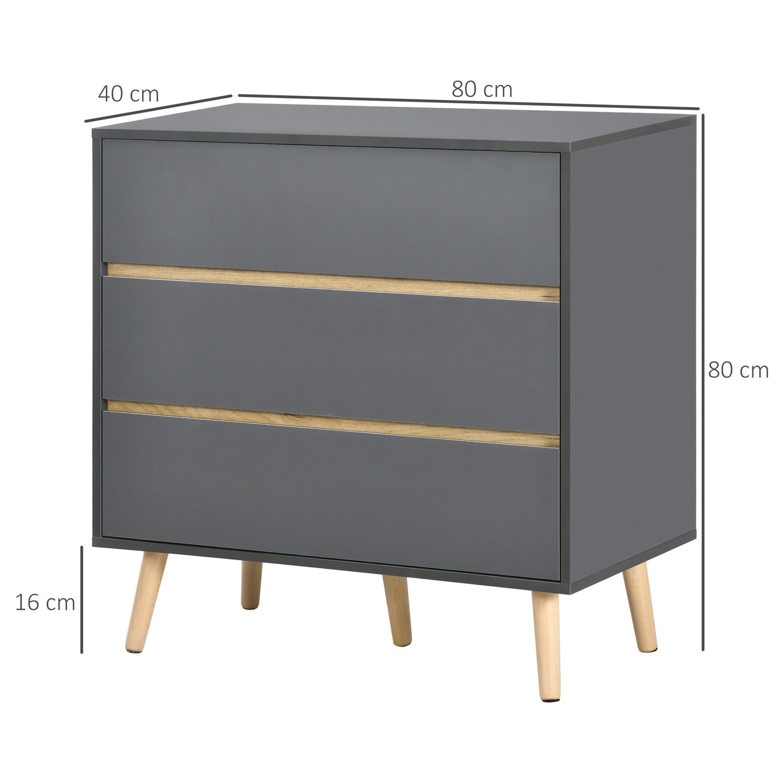 Make a statement, with just a touch of moodiness for the season ahead: look to this HOMCOM bedside dresser. It comes in a dark matte grey colour, with wood-effect details bringing a touch of the natural. Comes with three drawers – room for keeping bedside essentials stored – as well as other places in the home. Complete with wooden legs for support and anti-tipping straps for safety.