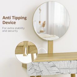 Bring beautiful and stand-out style into your everyday routine with this dressing table from HOMCOM. Made from wood, the frame is crafted into a compact yet semi-spacious design which features a large pull-out drawer, giving you room for keeping all your cosmetics, toiletries and makeup discreetly stored away and within easy reach. The tabletop also gives you lots of holding room when getting ready, with the round mirror allowing you to see your reflection easily. Four outward-angled legs keep this piece balanced and stable, with pretty line patterning on the drawers to finish.