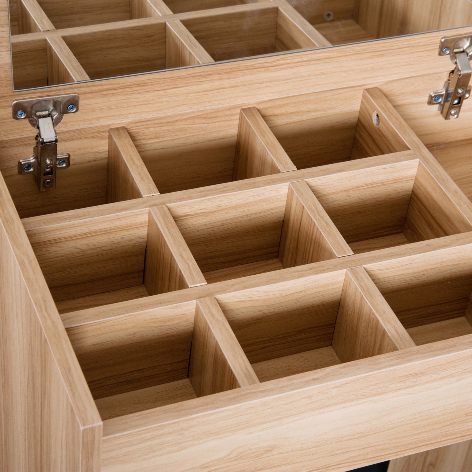 - Flip-up mirror can be set to a 90-degree position for convenient making up and dressing use