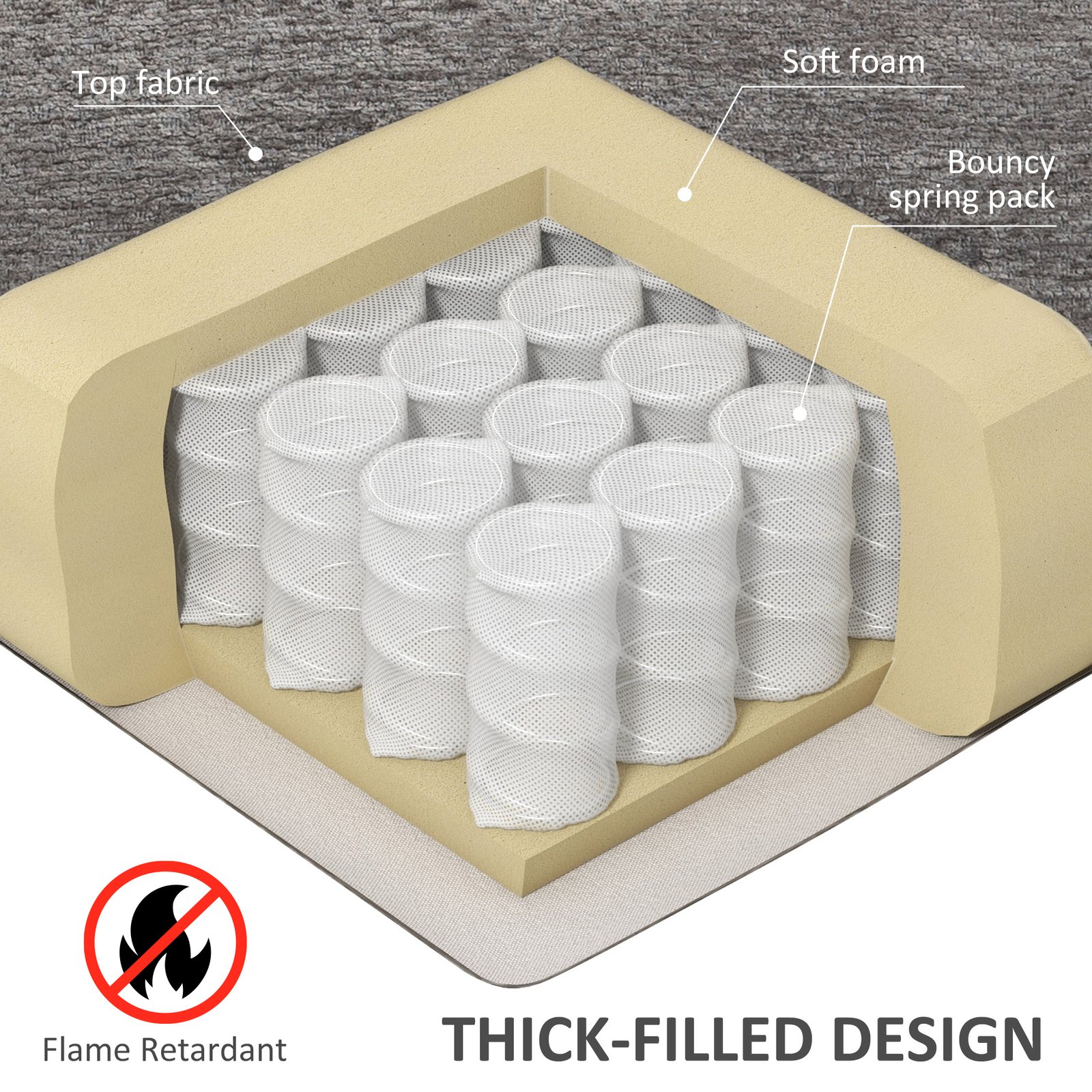 - Oversized, with thick sponge padding and spring system: super comfortable