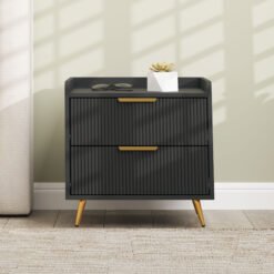 A bedroom essential, in bold and elegant style with this HOMCOM nightstand. The ridged drawer fronts and gold tone handles add a beautiful touch to the solid colour. With two drawers and a flat tabletop, with safe low-rise walls, there’s lots of storage for bedtime essentials and more. Complete with a metal legs for strong support.