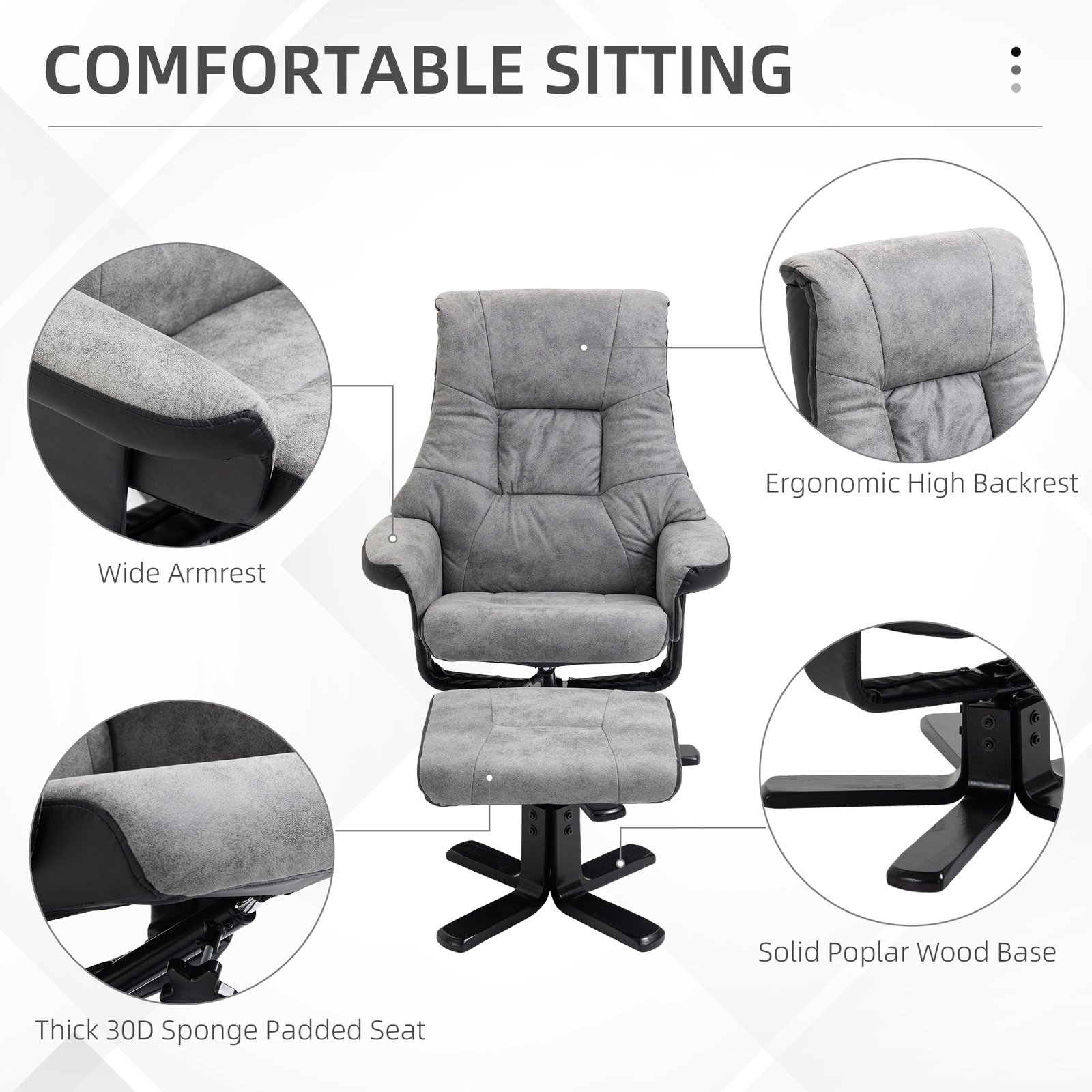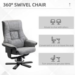 Sink into double the comfort with armchair and footstool duo from HOMCOM. Shaped into a large size, the swivel recliner chair is covered in thick foam padding for comfort, with breathable micro fiber upholstery, in a vintage looked finish for a cool and timeless look. This swivel chair can recline back to a maximum 135 angle via the under-seat handle, making it perfect paired with the footstool.The perfect spot for your afternoon time-outs.