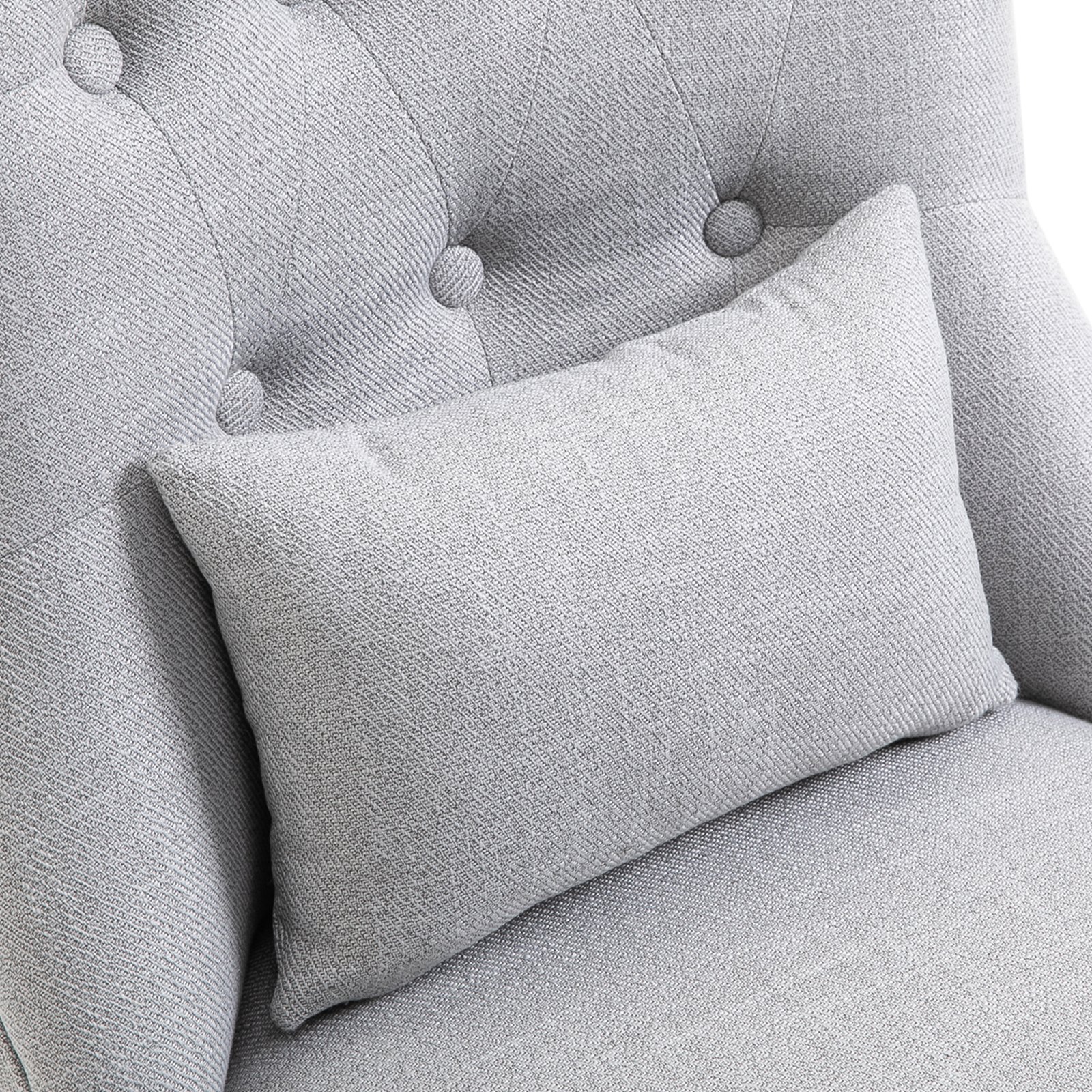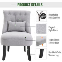 Sink into something comfortable without sacrificing on your precious home space with this accent chair, from HOMCOM. Linen-look fabric, the curved wooden legs and delicate button tufting on the back evokes a vintage style – a statement in any setting. Soft cushioned seat and curved backrest for comfort and support. Something different for this season and beyond.