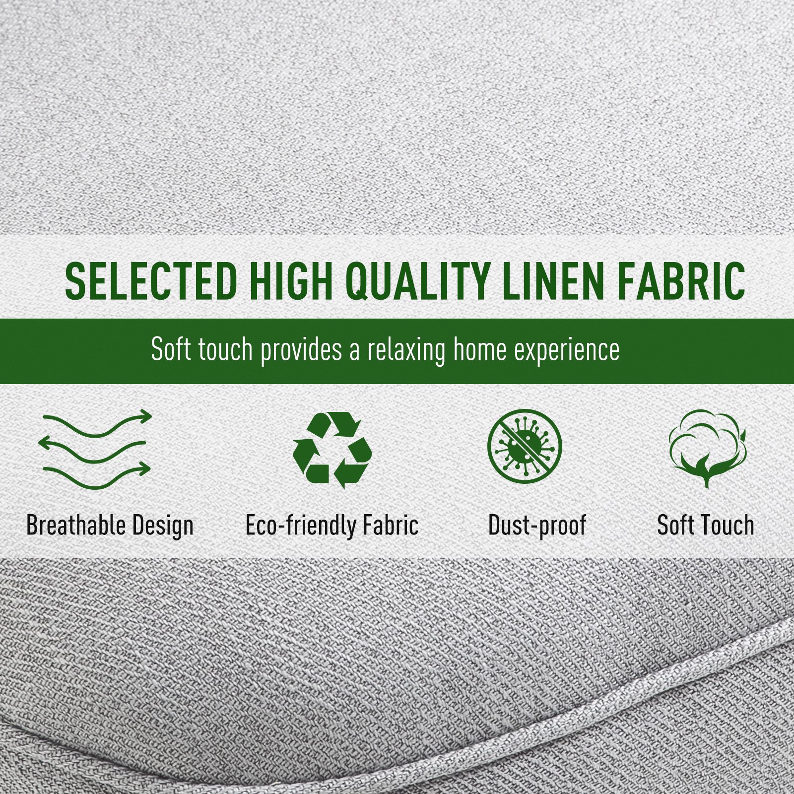 - Material: Linen (100% Polyester), Sponge, Solid Rubber Wood