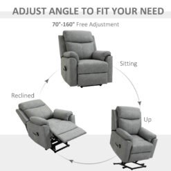 Getting in and out of this HOMCOM recliner chair is easy – thanks to its electric lift up-and-down movement. Gently moves down and lifts up to 70° angle – this electric recliner is ideal for elderly individuals and those who need a little assistance. The back reclines to a maximum 160° angle, with the footrest working in sync; with the thick padding, this is a super comfortable and customisable design suitable for plenty of tasks. Remote included for easy control.
