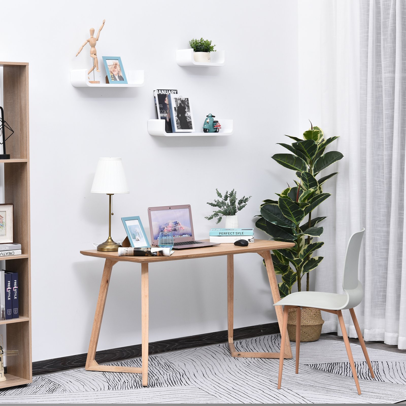 - 3 x Shelf Size: 60L x 15W x 10H (cm), 45L x 15W x 10H (cm), 30L x 15W x 10H (cm)
