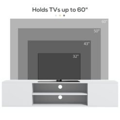 HOMCOM Floating TV Stand Cabinet for TVs up to 60″, Wall Mounted TV Unit with Open Shelf, Storage Cupboards and Cable Management for Living Room, White