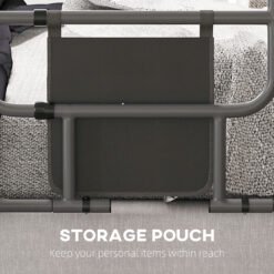 This HOMCOM adult bed guard supports you getting in/out of bed. One side moves – move down to access the bed – change sheets, move in/out and more. Made from steel, the frame is strong and supportive, complete with a 30 x 31cm side pocket to keep small items close to you. Easy to install, saving you time and fuss.